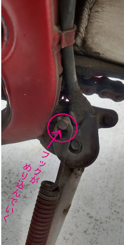 ・サイドスタンドスプリングをひっかけるフレーム側ステーの頭がもげる